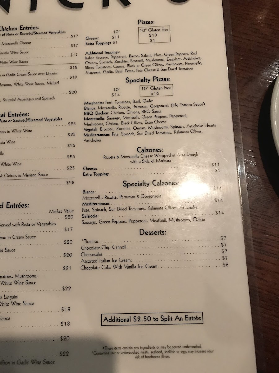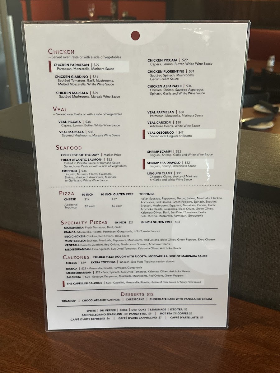 Capers, lemon, and white wine sauce. Served with your choice of side.